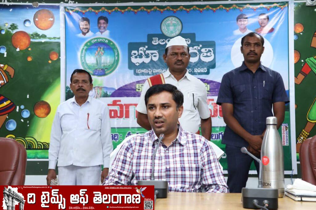 సి సి ఎల్ ఎ స్థాయిలలో అప్పిలు చేసుకోవచ్చని తెలిపారు. గ్రామాలలో చాలావరకు భూమి హద్దుల గొడవలు ఉంటాయని,కానీ భూభారతిలో రీ సర్వే, కొనుగోలు, పాలు పంపకాలు, దస్తావేజులు,విరాసట్ పట్టా మార్పిడికి తప్పనిసరిగా కమతం జతపరచడం వల్ల భవిష్యత్తులో భూ గొడవలు ఉండవని తెలిపారు. భూభారతి చట్టంలో బాధితులకు న్యాయ సలహా వ్యవస్థ ఉందని,గతంలో గ్రామాలలో గ్రామ పరిపాలన, వి ఆర్ ఓ / వి.ఆర్.ఏ వ్యవస్థ ఉండేవని, వారిని ఇతర శాఖలలో సర్దుబాటు చేయడం వల్ల గ్రామాలలో భూ సమస్యలు పెరిగాయని, త్వరలో గ్రామ పాలన అధికారి, లైసెన్సుడ్ సర్వేయర్ల నియామకంతో భూ సమస్యలను తగ్గించవచ్చని తెలిపారు.విరాసత్ మార్పిడికి వారసులకు అందరికీ నోటీసులు జారీ చేసే ప్రక్రియ ఉందని, భవిష్యత్తులో ఎలాంటి గొడవలు ఉండవని తెలిపారు. ప్రతి రైతు భూభారతి చట్టంలోని అంశాల పట్ల అవగాహన చేసుకోవాలని తెలిపారు. కార్యక్రమంలో తహసిల్దార్ జగదీశ్వర్,మండల అధికారులు,రెవెన్యూ సిబ్బంది, రైతులు తదితరులు పాల్గొన్నారు.